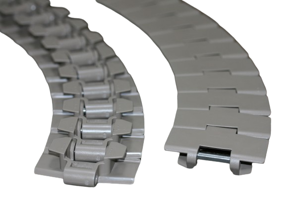 La gama de cadenas transportadoras de plástico de alta calidad está disponible en versiones rectilíneas y curvilíneas. Son completamente compatibles con los modernos estándares de la industria.